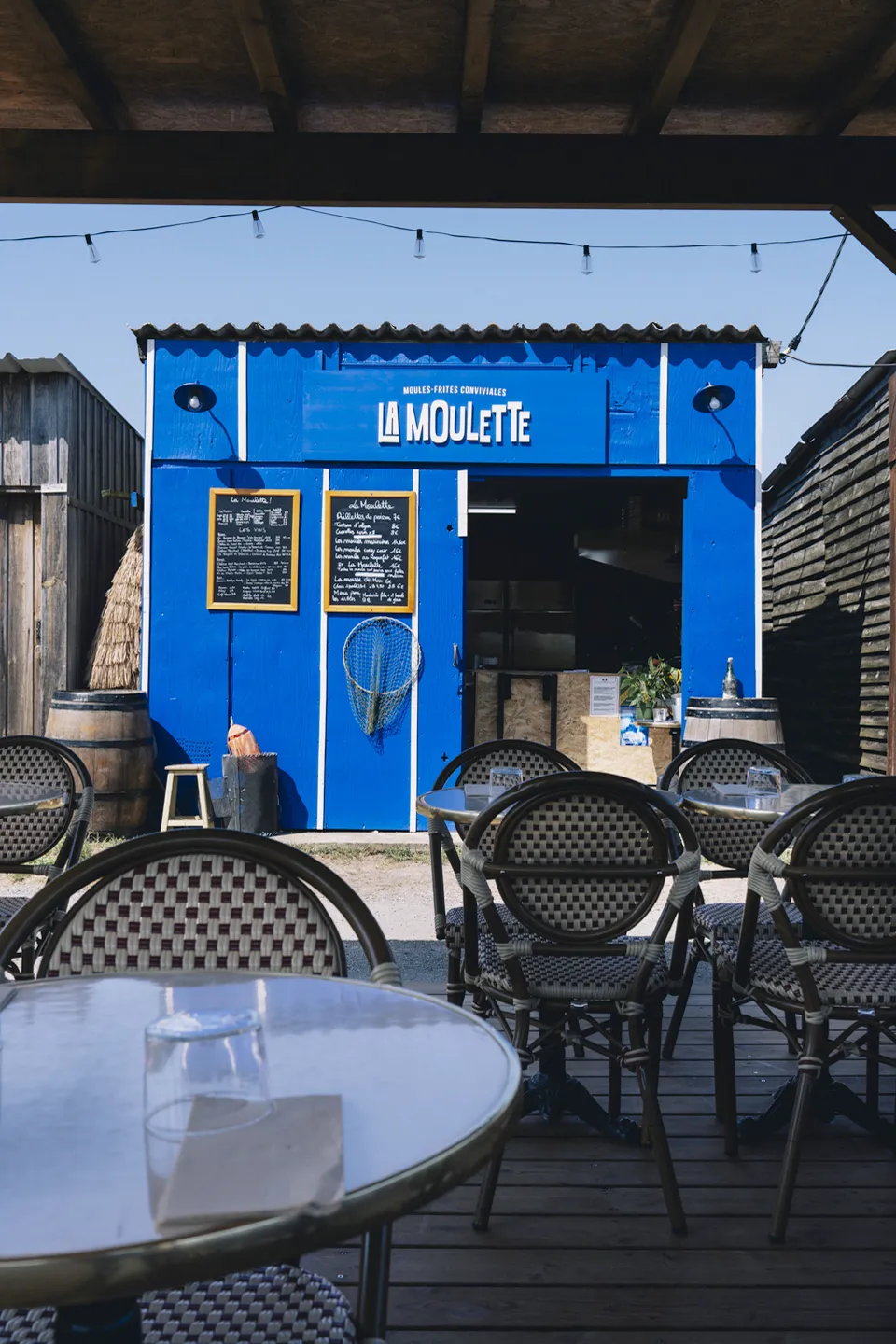 Ici, on sert les moules-frites comme on les aime : généreuses, parfumées, tout juste sorties de la marmite. Nichée dans le Médoc au Verdon-sur-Mer, à deux coup de pédale de Soulac, de l’océan et du port, La Moulette est bien plus qu’un restaurant, c’est un petit bout d’été. On y vient pour l’odeur des moules de la maison Hurtaud, le bon vins du coin, les verres qui trinquent, et ces rires en famille ou entre amis.
